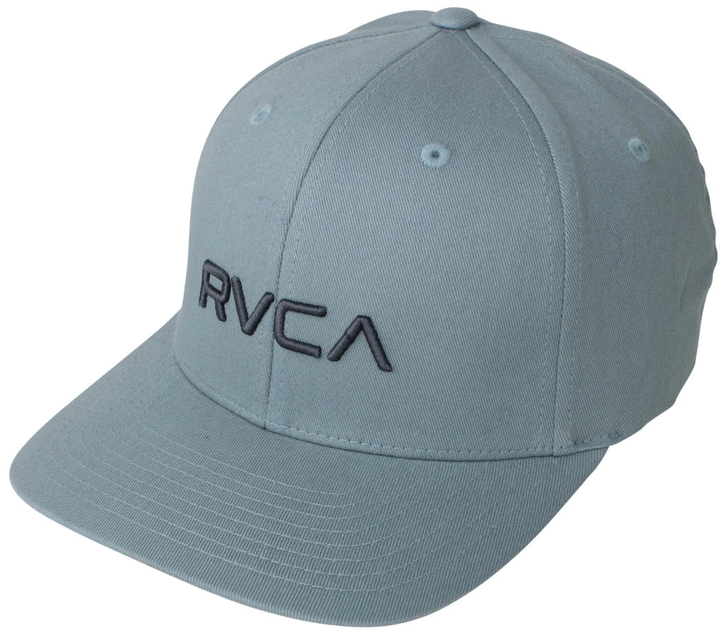 The RVCA Flex Fit is a mid fit, 6-panel darted flex fit hat with a curved visor, with RVCA raised embroidery at the front and VA embroidery at the rear.